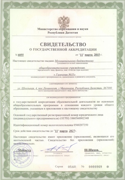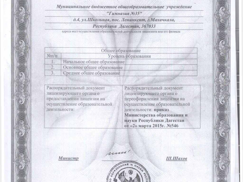 | Полное наименование образовательной организации* | Муниципальное бюджетное образовательное учреждение "Гимназия № 35" |